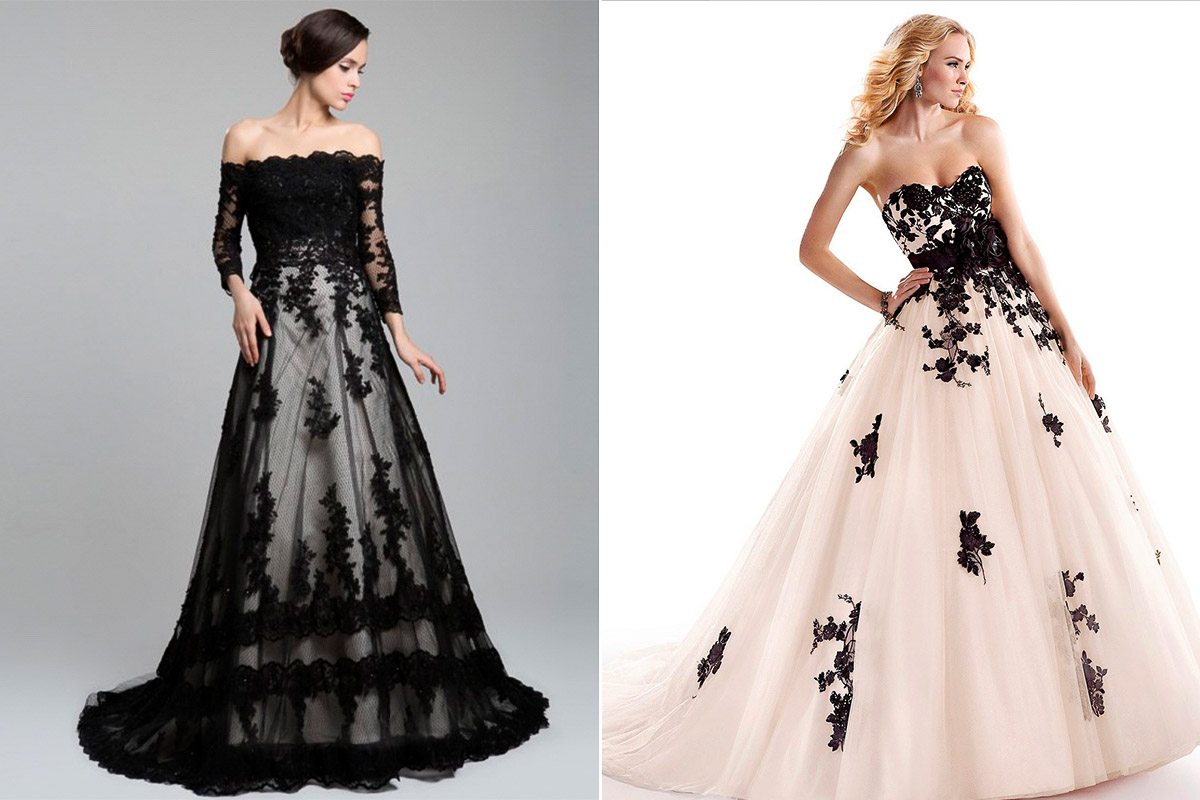 Допустимым может являться даже чёрное платье. Но при таком выборе невесте следует быть осторожной. Так как чёрный цвет во многих культурах прочно ассоциируется с трауром, чёрное свадебное платье может быть неверно истолковано окружающими, словно для невесты торжество — вовсе не праздник, а трагедия. Спасти положение может вышивка серебряной или золотой нитью, которая достаточно эффектно и богато будет смотреться на чёрной ткани.