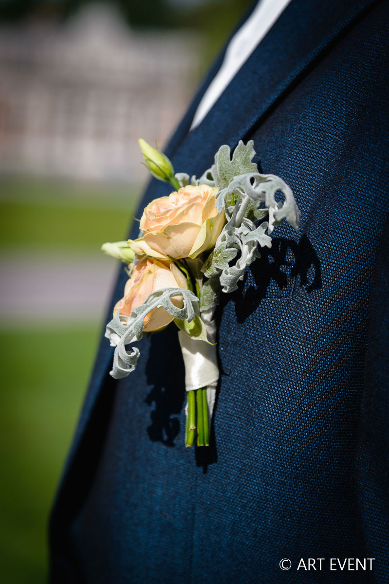 - бутоньерка для свадьбы — минималистичная, небольшая, можно даже использовать веточку без цветов;
