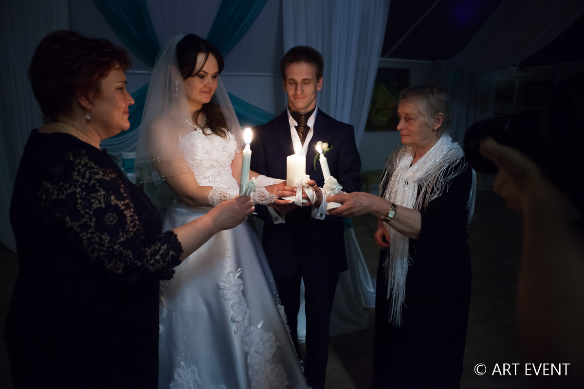 Свечи можно раздать гостям во время проведения выездной регистрации или же во время первого танца жениха и невесты. Или же можно выложить на полу большой круг из свечей или сердце, внутри которого и будет исполняться танец.