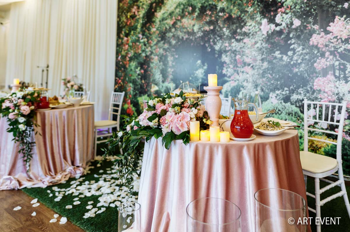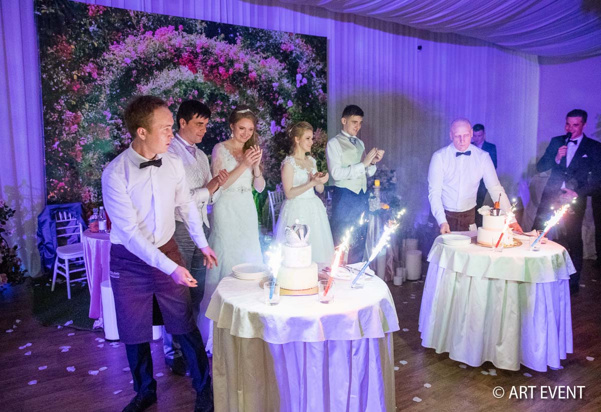 Для банкета мы предложили загородный клуб на юге Москвы — именно здесь обе невесты сошлись в своих желаниях: сделать свадьбу на природе, но не в шатре, загородом, но не далеко от Москвы, и обязательно с возможностью остаться на ночь в коттеджах.
