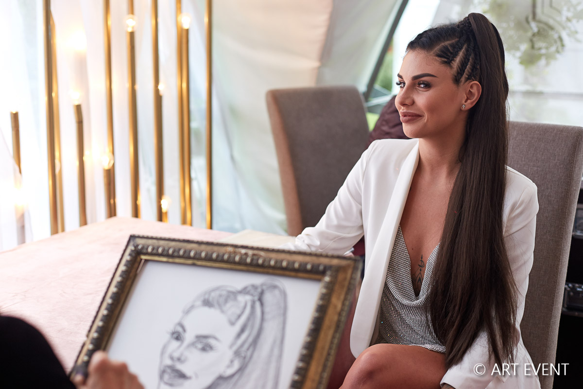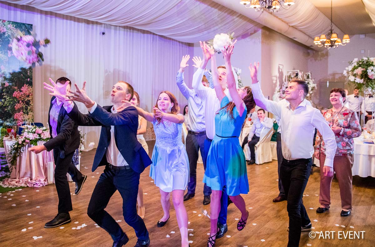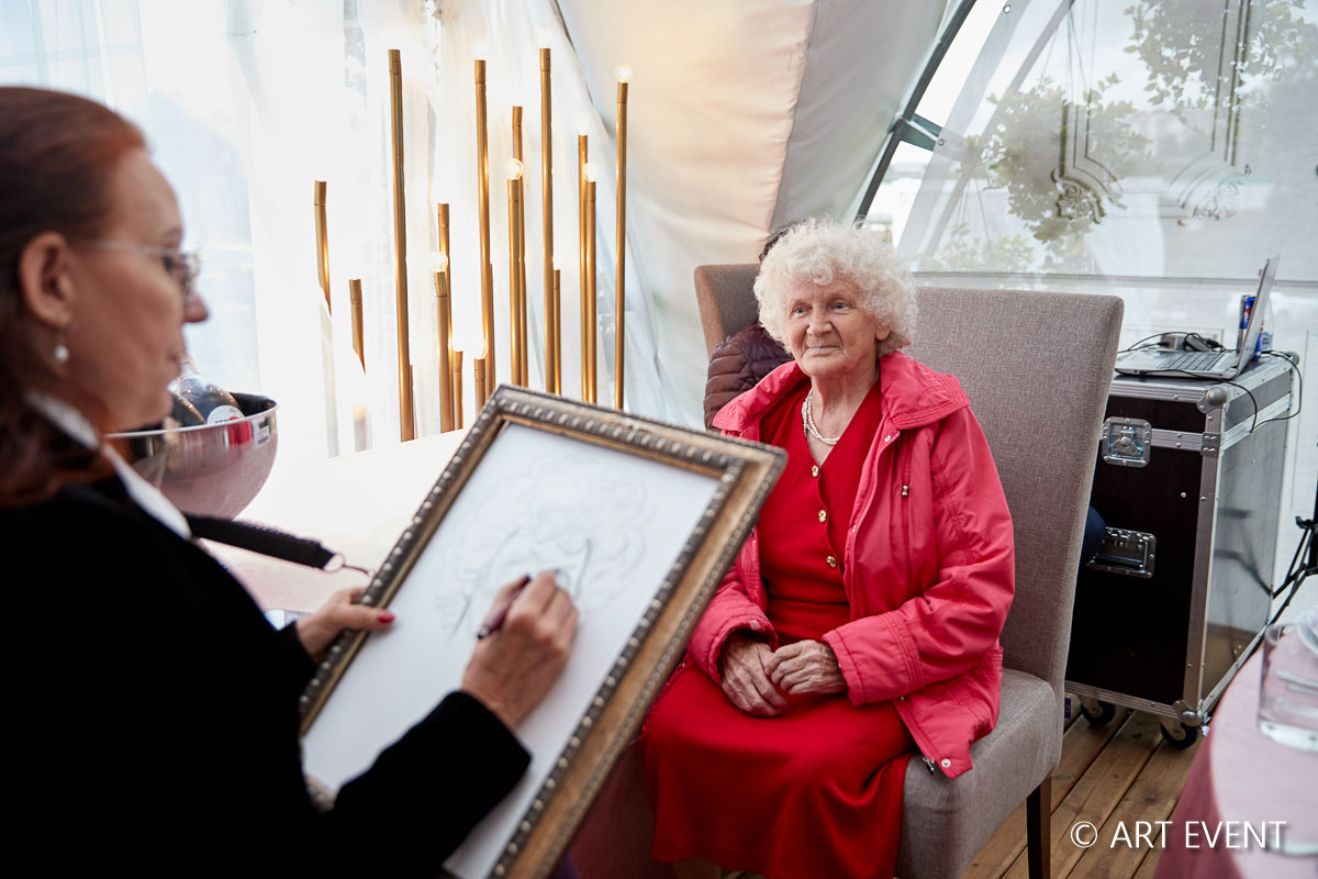 Пока обе пары готовились к банкету, мы развлекали уже начавших съезжаться гостей. С одними работала художница-шаржистка, другие снимались для флипбуков. А украшением вечера стало выступление шоу-балета.