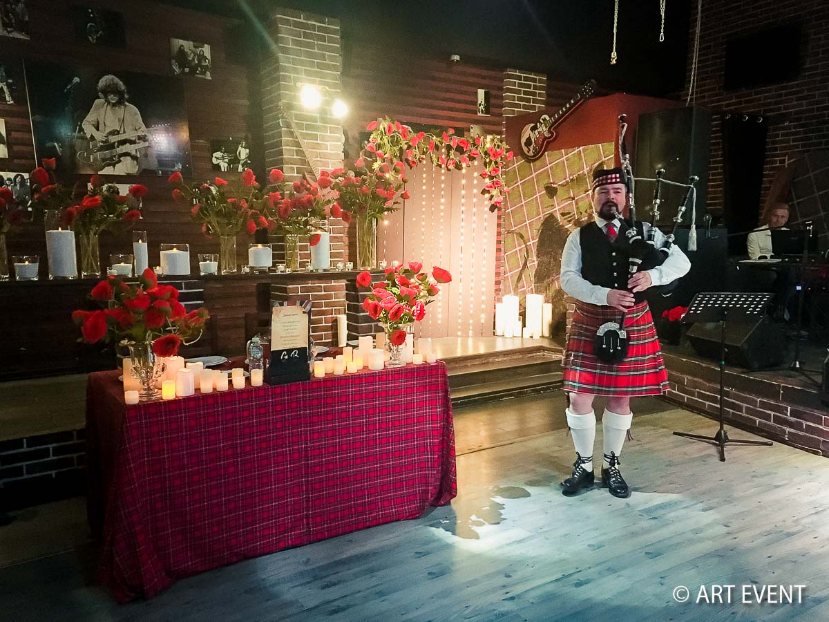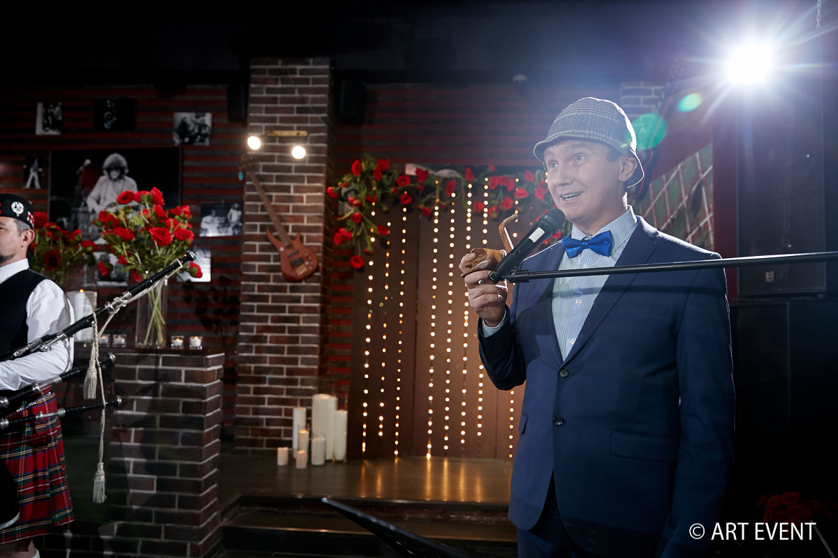 Торжественную церемонию нельзя было доверять никому, кроме Шерлока Холмса. Гостей встречал настоящий волынщик! А танцевальное шоу несколько раз появлялось на сцене с традиционными английскими танцами. В финальном танце алых роз на танцпол вышли уже все гости.