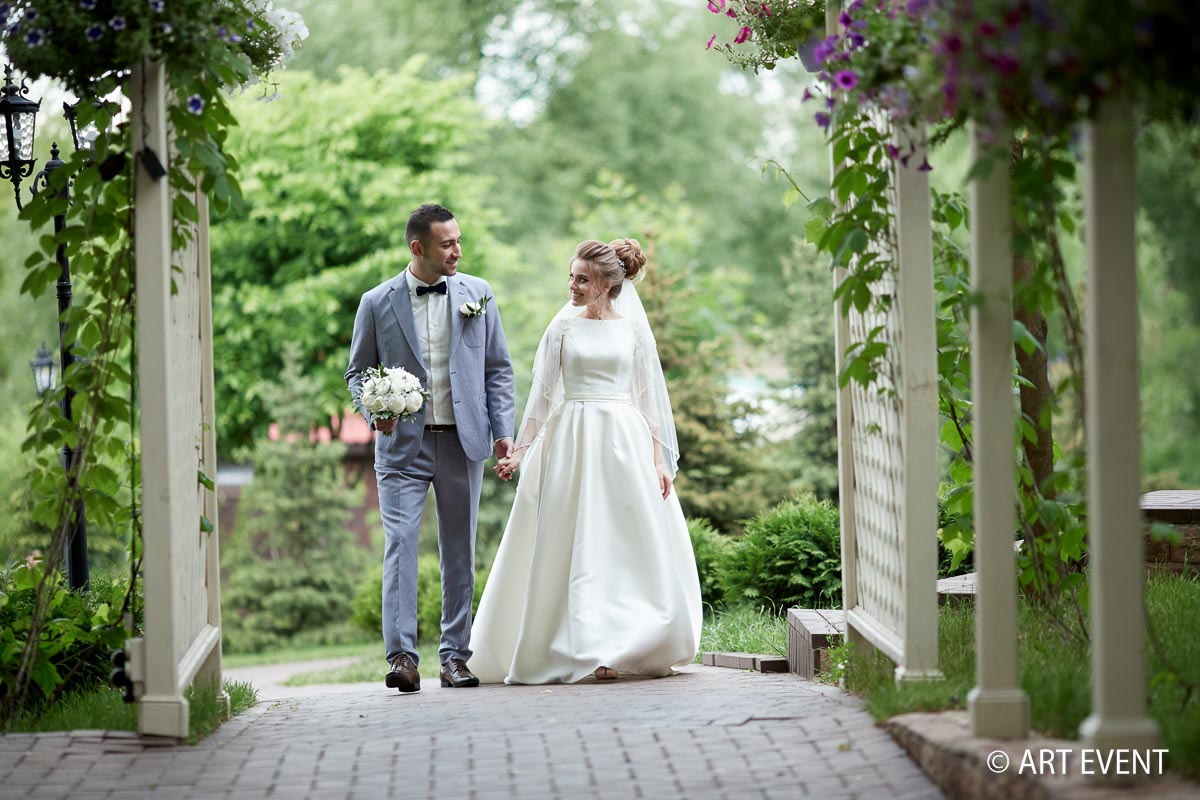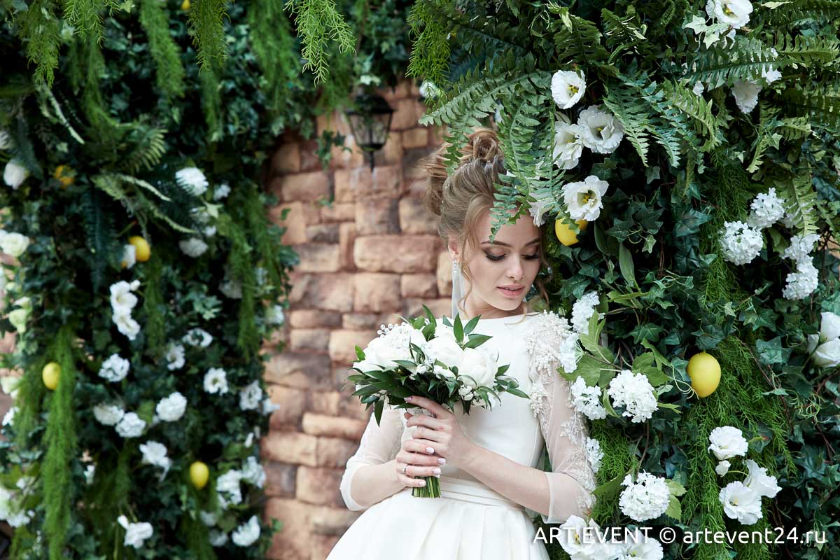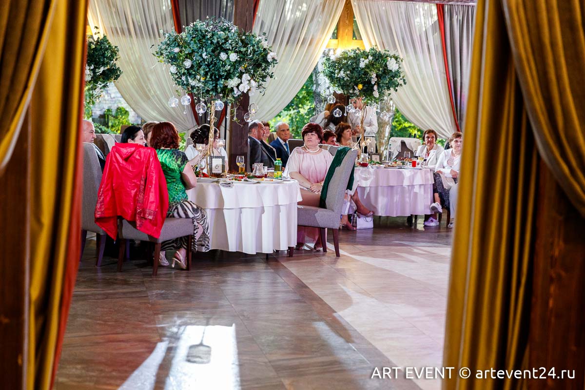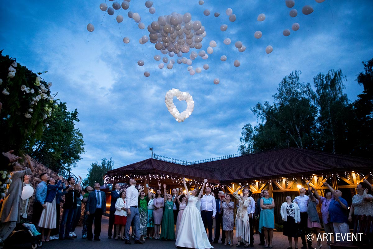 Трудно состязаться с красотой живописных ландшафтов, которые создала сама природа, поэтому оформление свадьбы стало своеобразным продолжением летней зелени и густого леса, обрамляющего этот уютный загородный комплекс.
