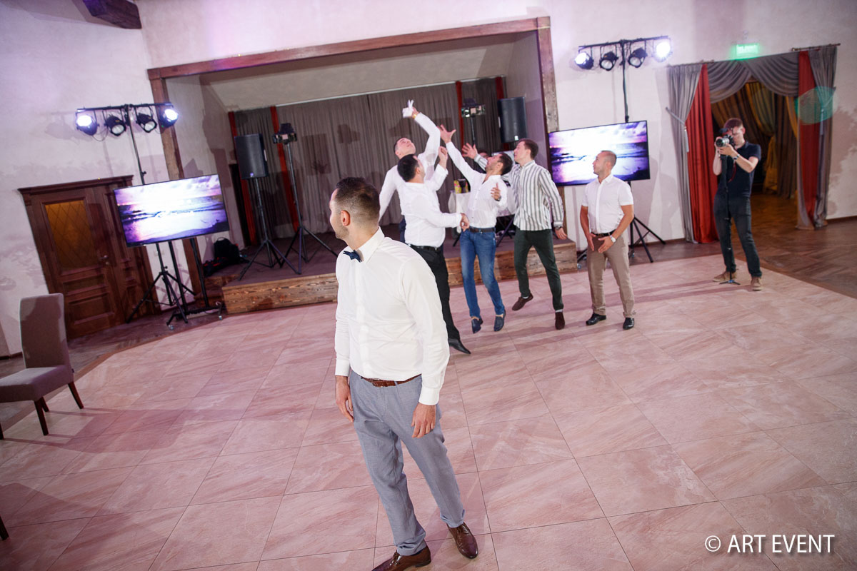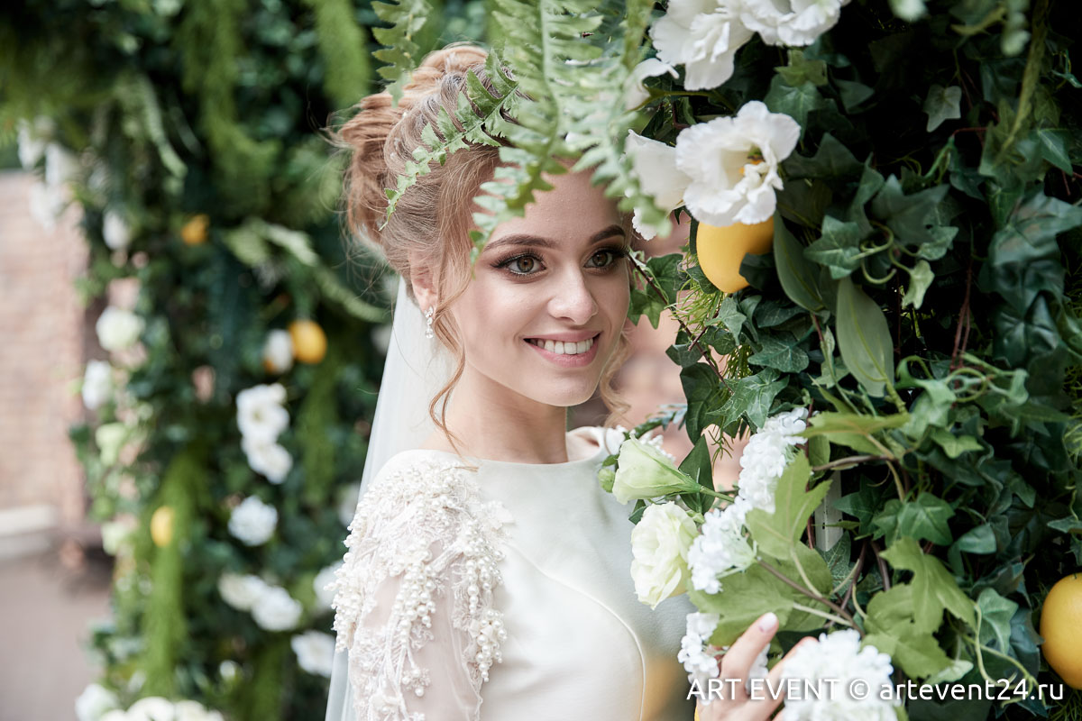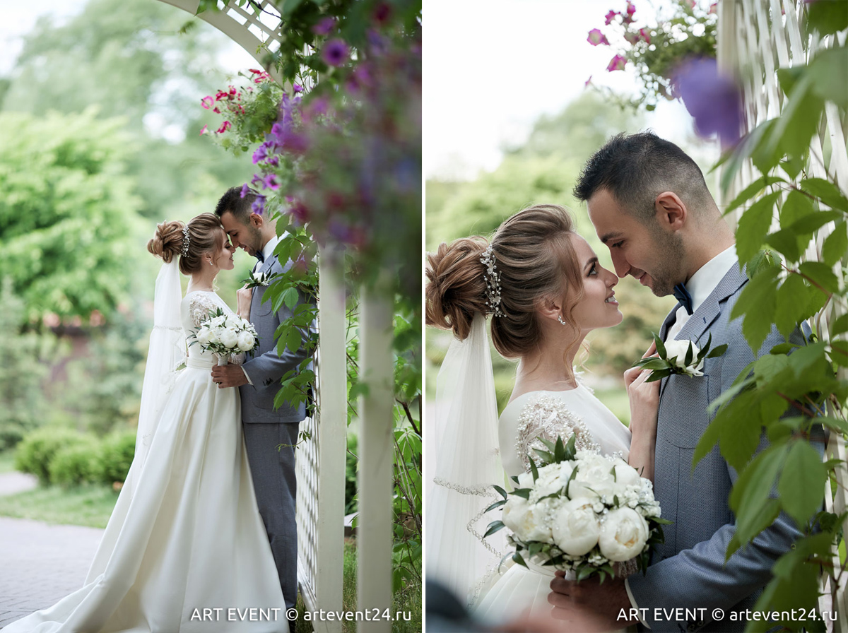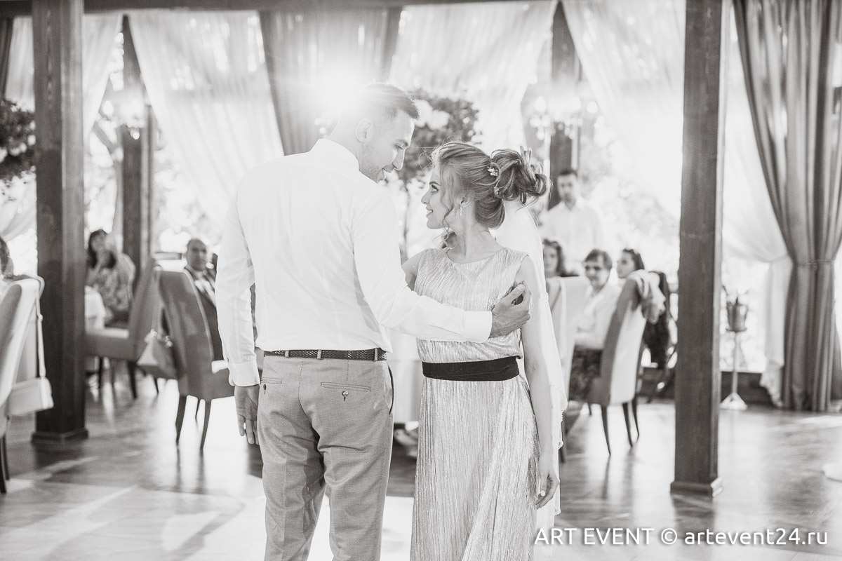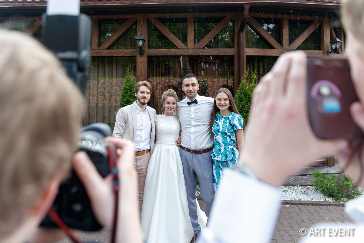 Каждая деталь торжества отражала тепло и воздушность июньского дня: свадебная церемония под открытым безоблачным небом, уличный кальянный бар, лёгкие закуски, весёлые танцы от шоу-балета и ненавязчивые интерактивы с гостями от интеллигентного ведущего.