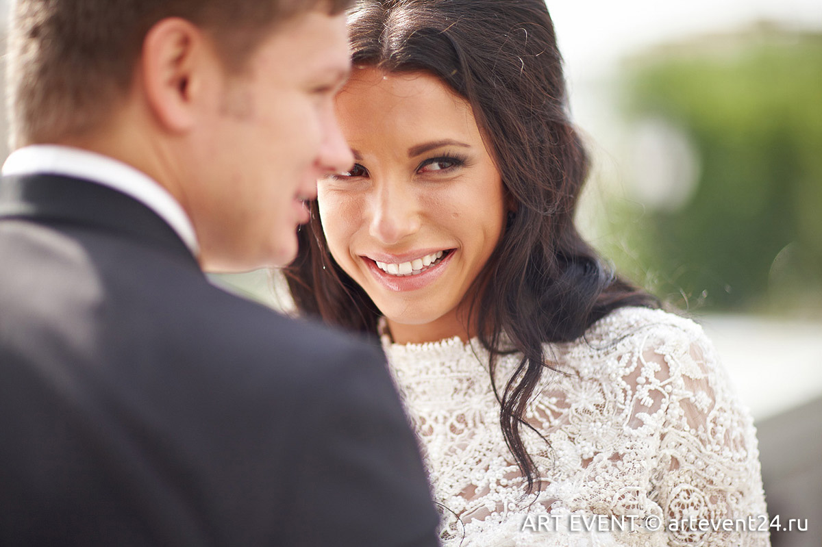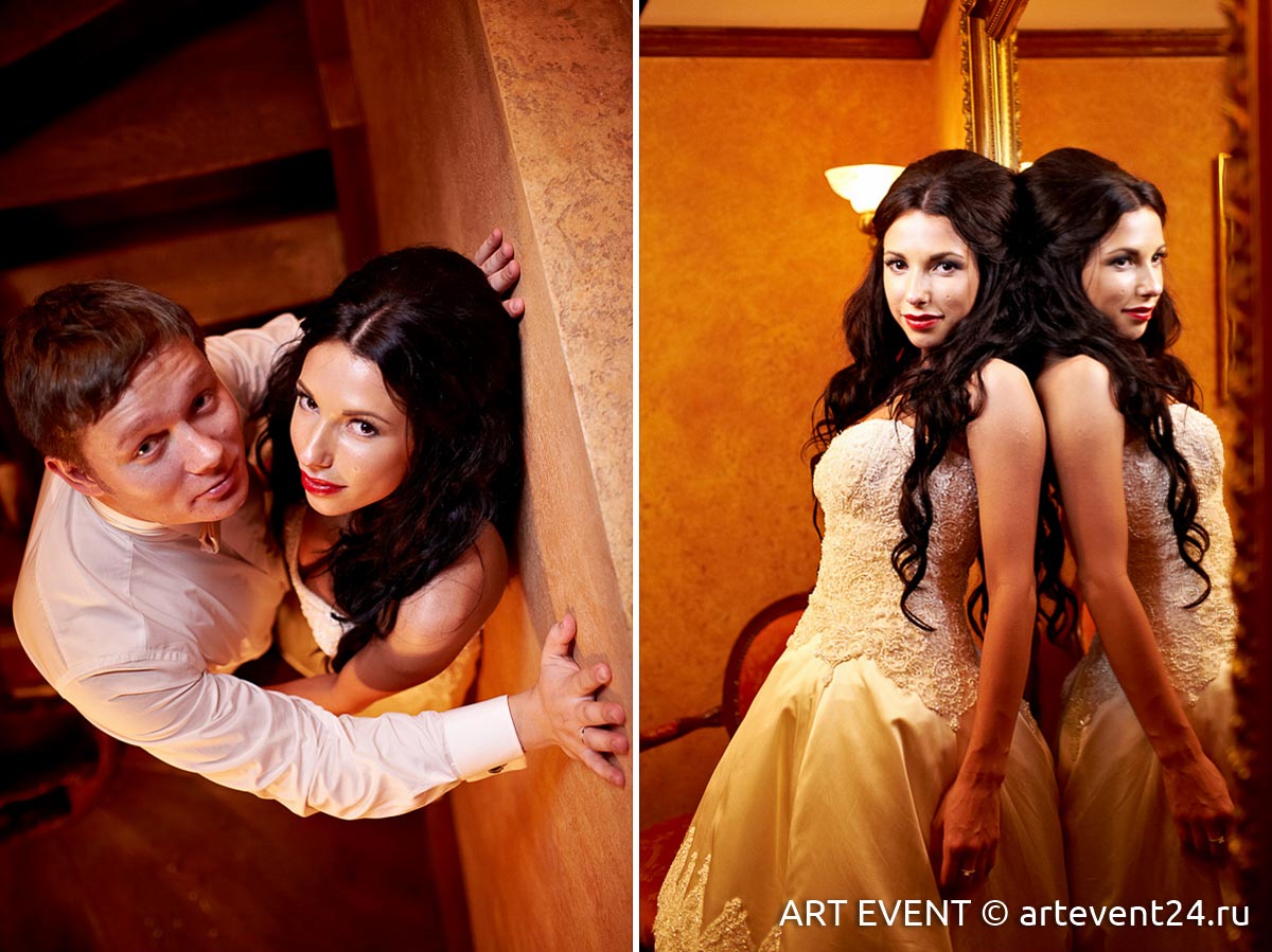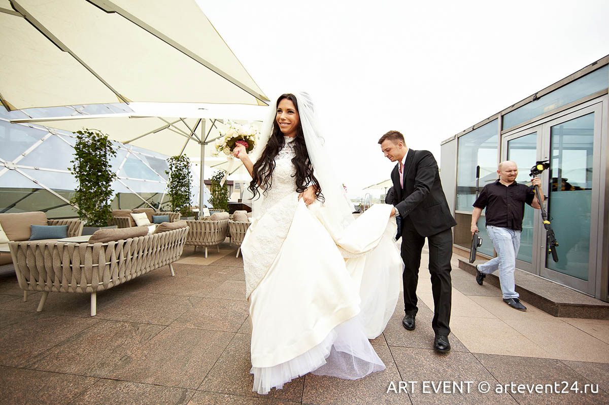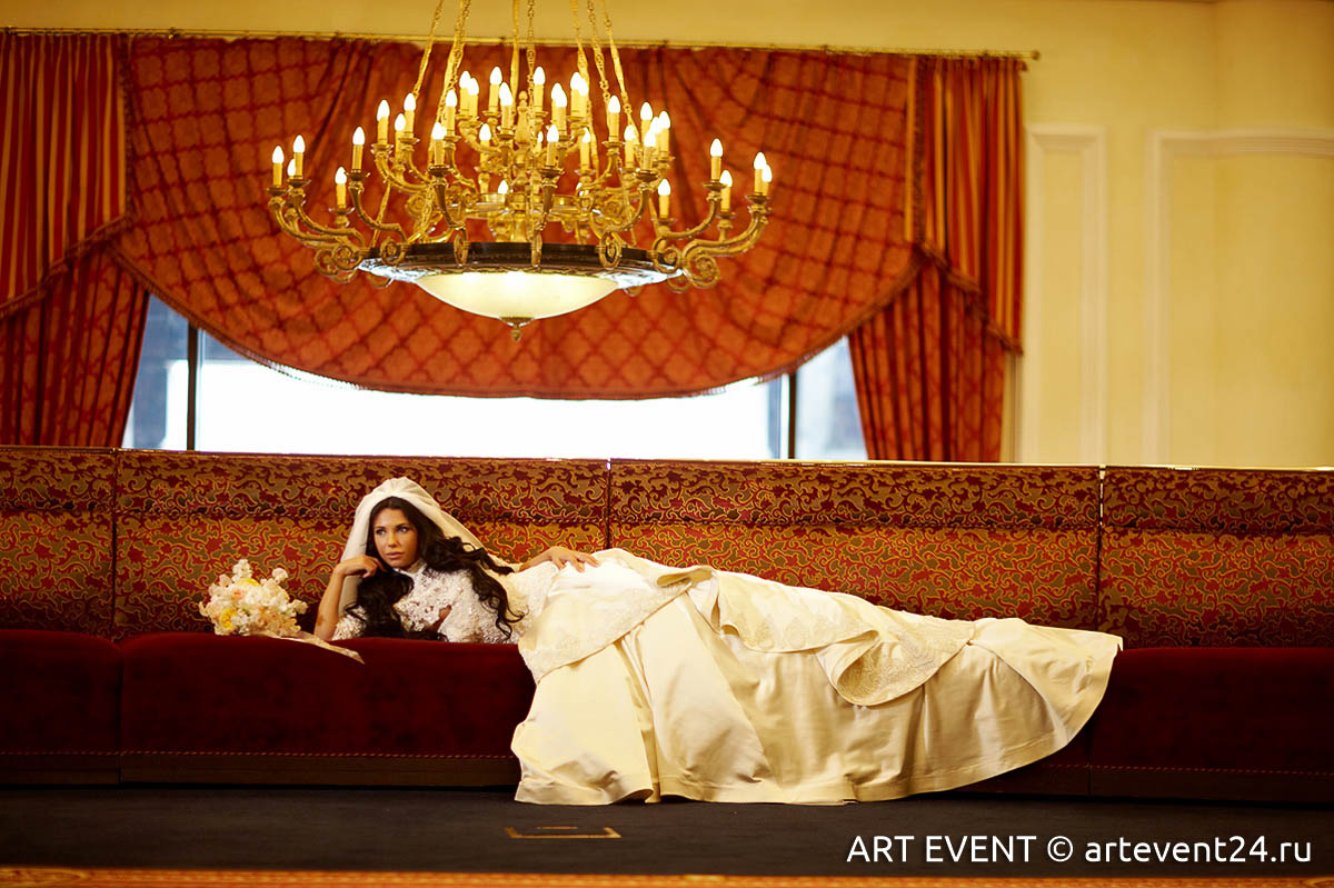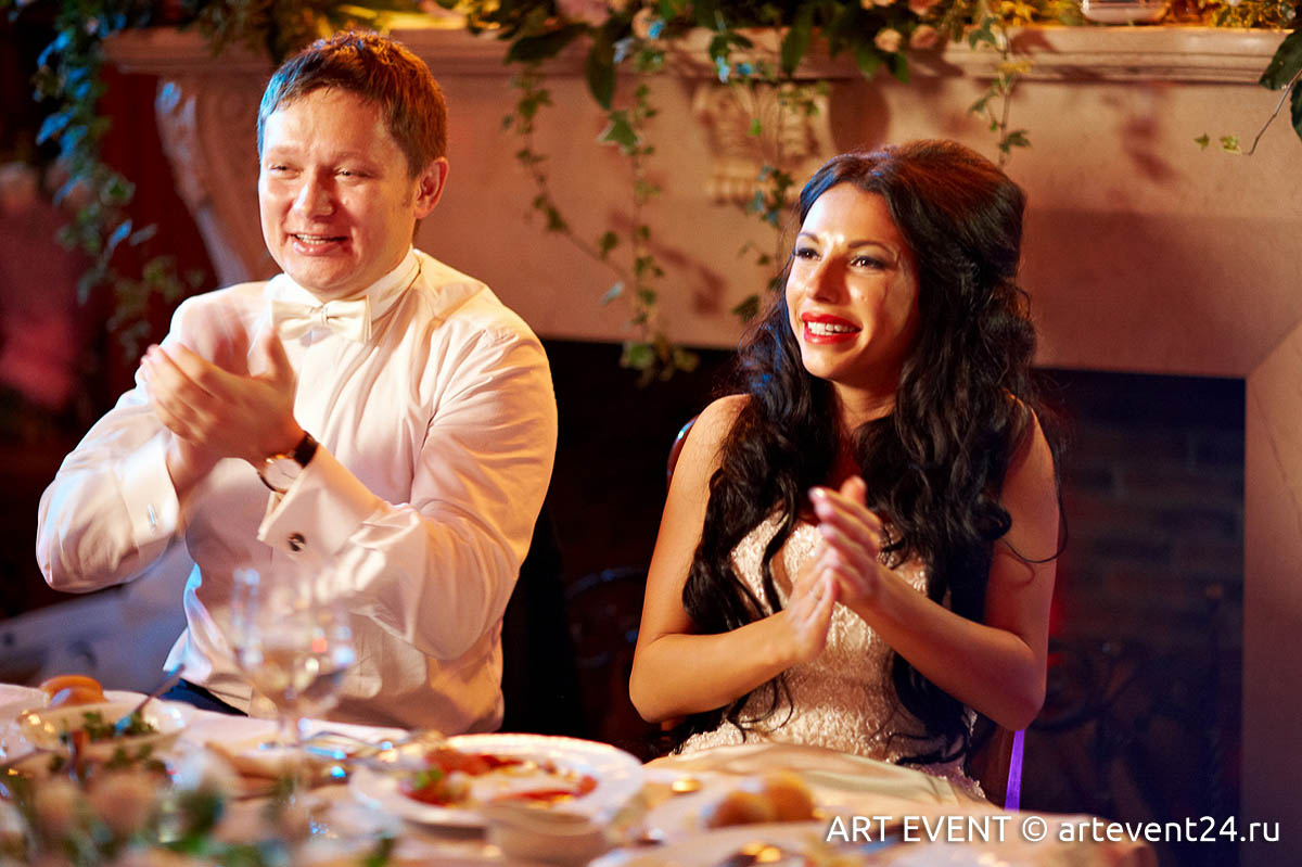 Над образом невесты трудились четыре стилиста, а фотосъёмку мы доверили одному из известнейших фотографов Москвы — Сергею Новожилову. Супруги просили сделать насыщенную музыкальную программу, поэтому свадьба пела и плясала до глубокой ночи: вначале вместе с Шоу поющих официантов, а потом с живой группой «Кинокомедия».