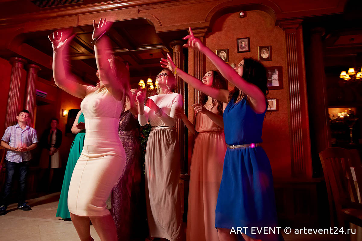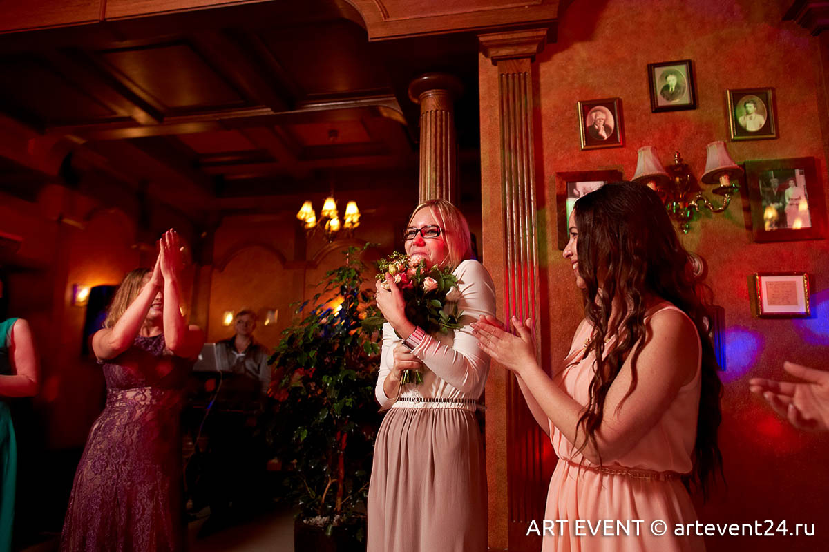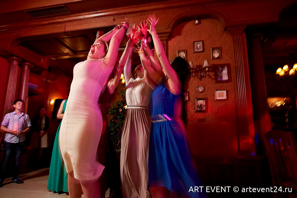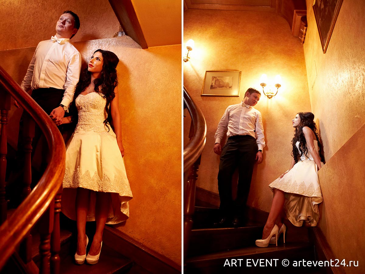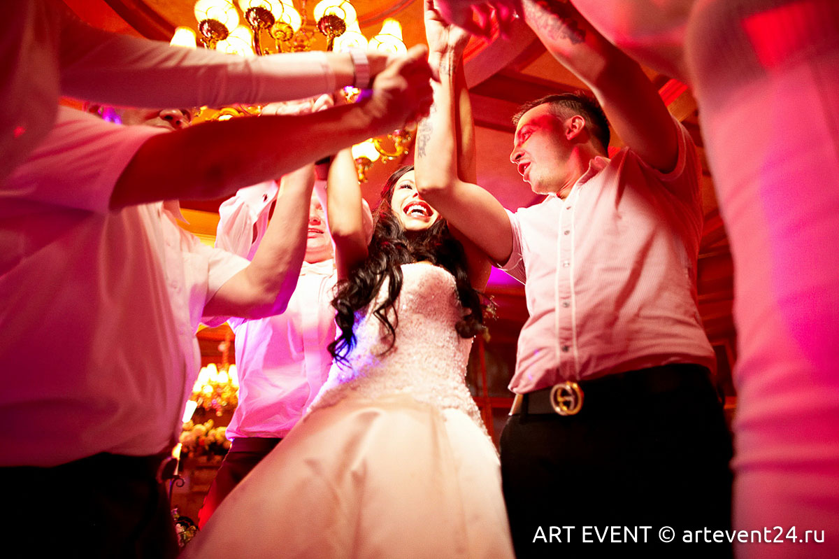 Над образом невесты трудились четыре стилиста, а фотосъёмку мы доверили одному из известнейших фотографов Москвы — Сергею Новожилову. Супруги просили сделать насыщенную музыкальную программу, поэтому свадьба пела и плясала до глубокой ночи: вначале вместе с Шоу поющих официантов, а потом с живой группой «Кинокомедия».