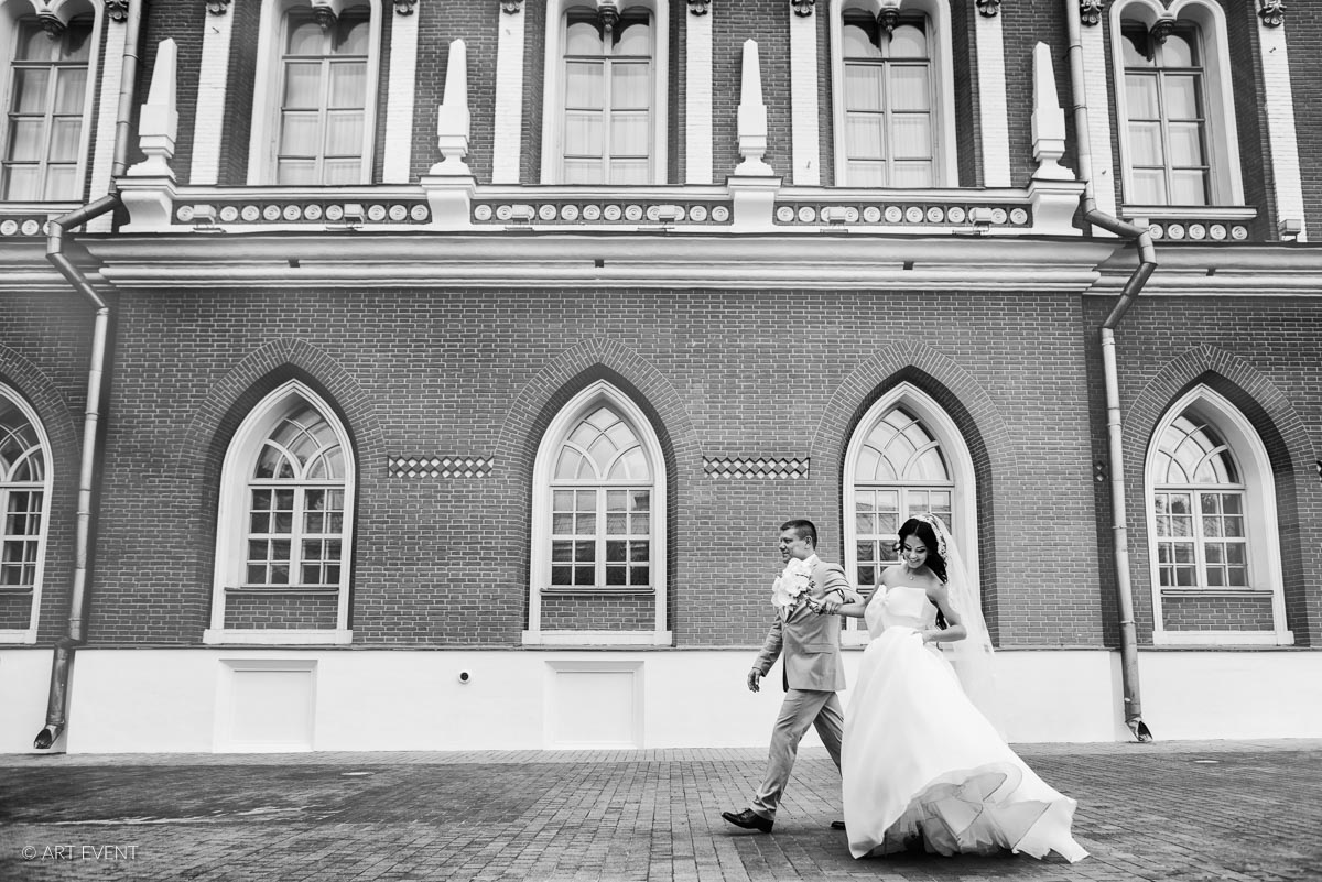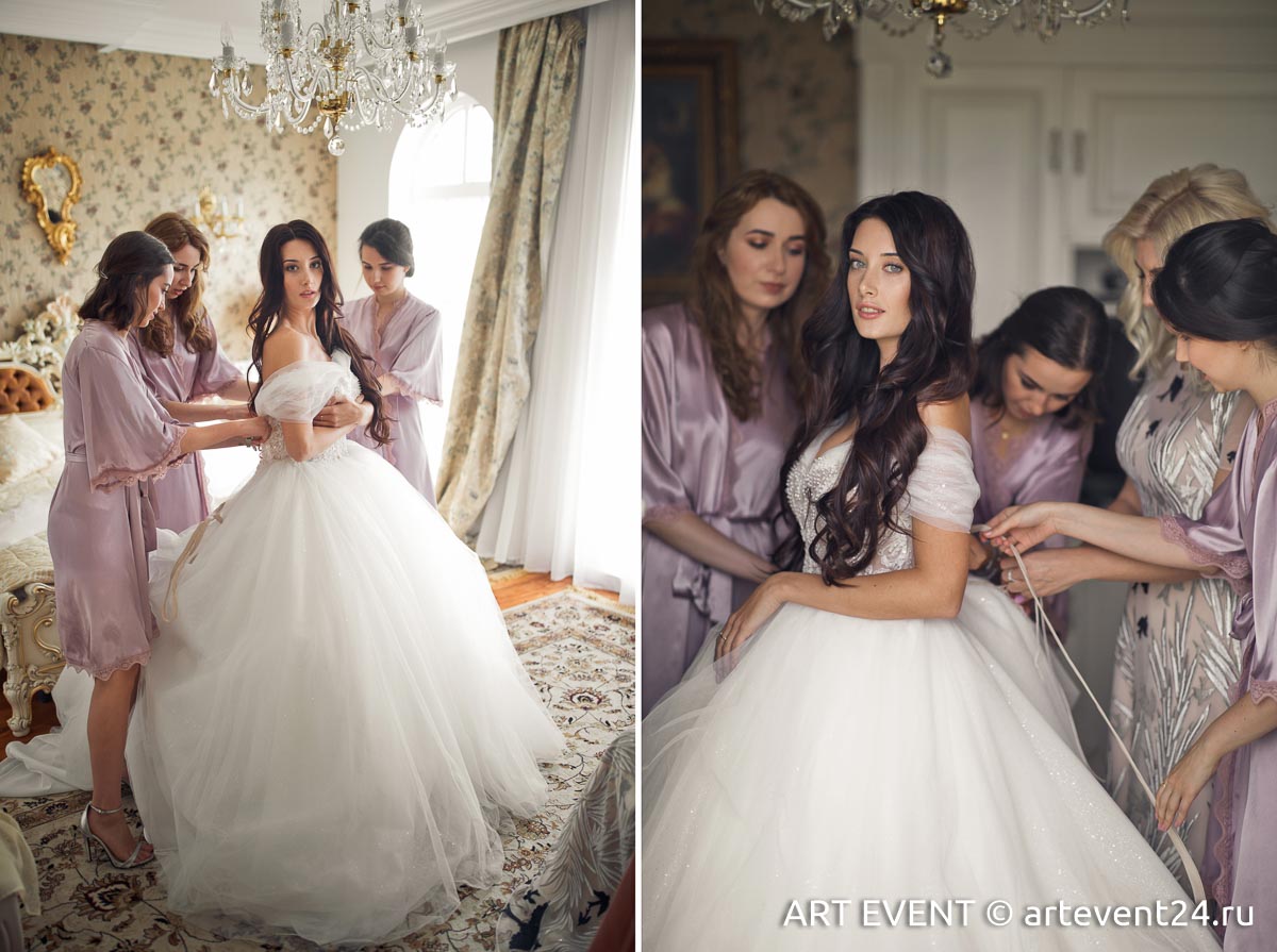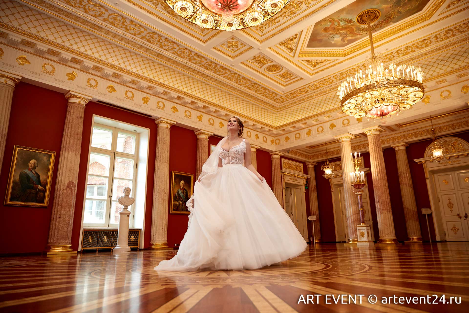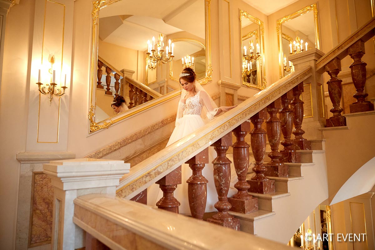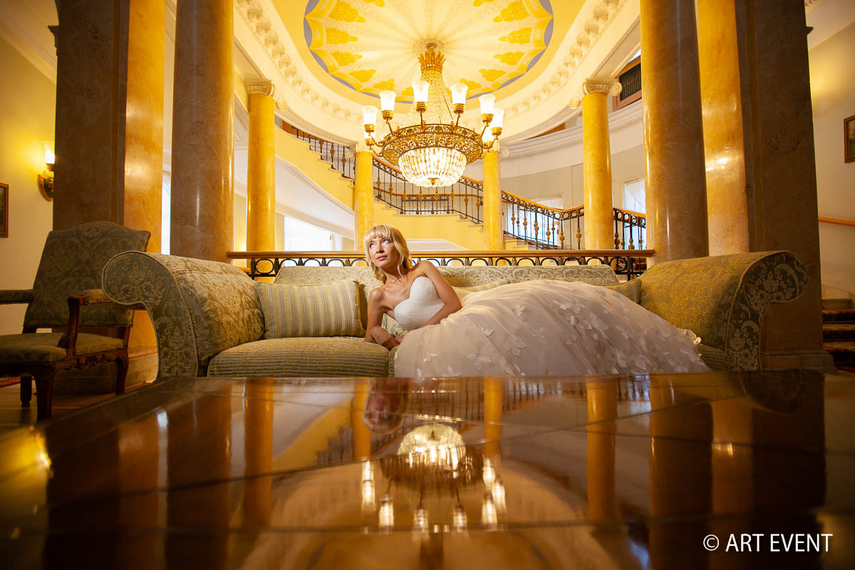 • Оформление зала (флористика + декор): столы гостей, президиум, букет невесты, бутоньерка жениха