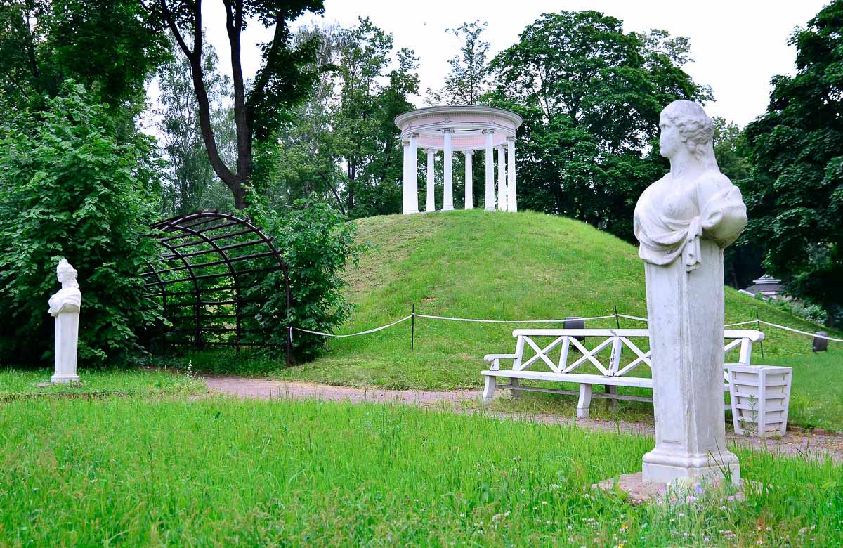 Дворец и Увеселительный сад, проектировались одновременно. В саду кроме масштабных посадок аллей из клёнов, елей и лип, были высажены декоративные растения, фруктовые и овощные культуры. Парк дополняли две беседки: «Парнас» и «Беседка – храм». По сей день усадьба пленит своей утончённостью и великолепием. Среди прекрасных памятников древней архитектуры сохранился Храм Живоначальной Троицы.