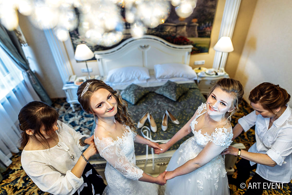 Жених и невеста – ключевые фигуры торжества. Над созданием их нарядов потрудятся стилисты. Они помогут выбрать платье и позаботятся о подборе костюма, составляющего с ним идеальную пару. Визажист сделает образы гармоничными. Также необходимо проведение репетиции. Стилисту и визажисту, в среднем, придется заплатить 15-18 тыс.