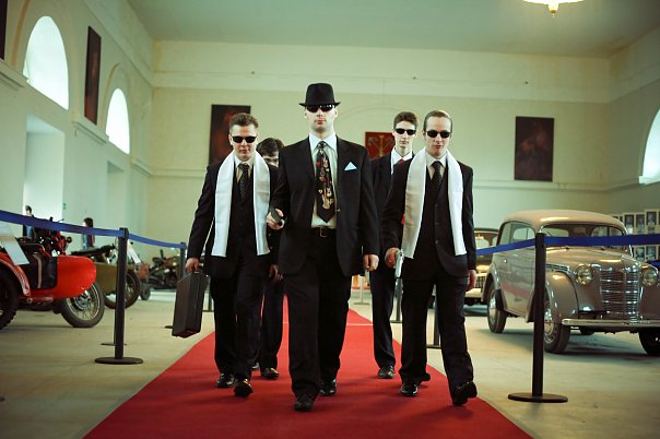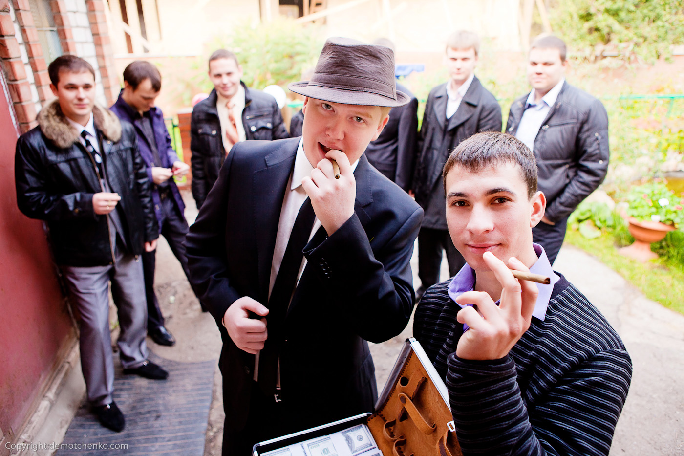 На входе в банкетный зал гостей встречал старинный американский автомобиль, в котором расположился молодой парень – саксофонист, стилизованный под гангстера и исполняющий джаз 30-х годов. В зоне для аперитива, девушки из мюзикла «Чикаго» предлагали гостям «из под полы» сигары (сигары в Америке 30-х были запрещены). Жених, его друзья и подружки невесты были одеты по моде Чикаго 30-х нашим модельером.