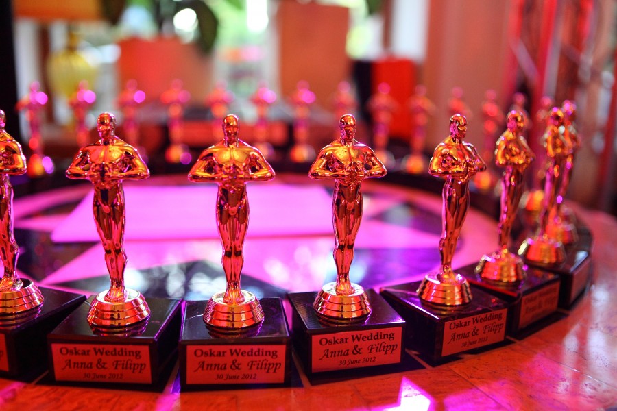 Каждый тост будет представлен как одна из номинаций, а каждый гость станет обладателем заветной статуэтки или приза, как комплимент от молодоженов. Оформление зала для свадьбы в стиле вручения Оскара предполагает строгую стильную атмосферу, которую создадут для Вас наши дизайнеры. Для оптимизации бюджета свадьбы необходимые для оформления аксессуары и инсталляции можно взять на прокат. Свадьба в стиле премии Оскар – не банальный и эффектный выбор тематической свадьбы.