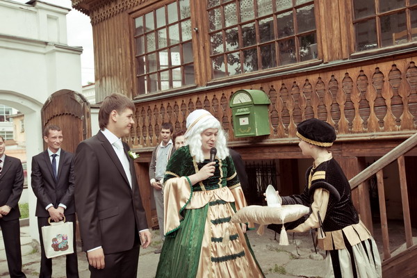 - «Свадьба в стиле русской сказки». Обычно мы делаем «микс» из популярных русских народных сказок и сказок А.Пушкина с участием множества сказочных героев в зависимости от пространства и времени года. Например, вместо выкупа жених проходит несколько испытаний, сражается с нечистой силой и в финале находит драгоценный ларец с ключом от сердца невесты. А золотая рыбка исполняет желания гостей. «Танцуют все!»…