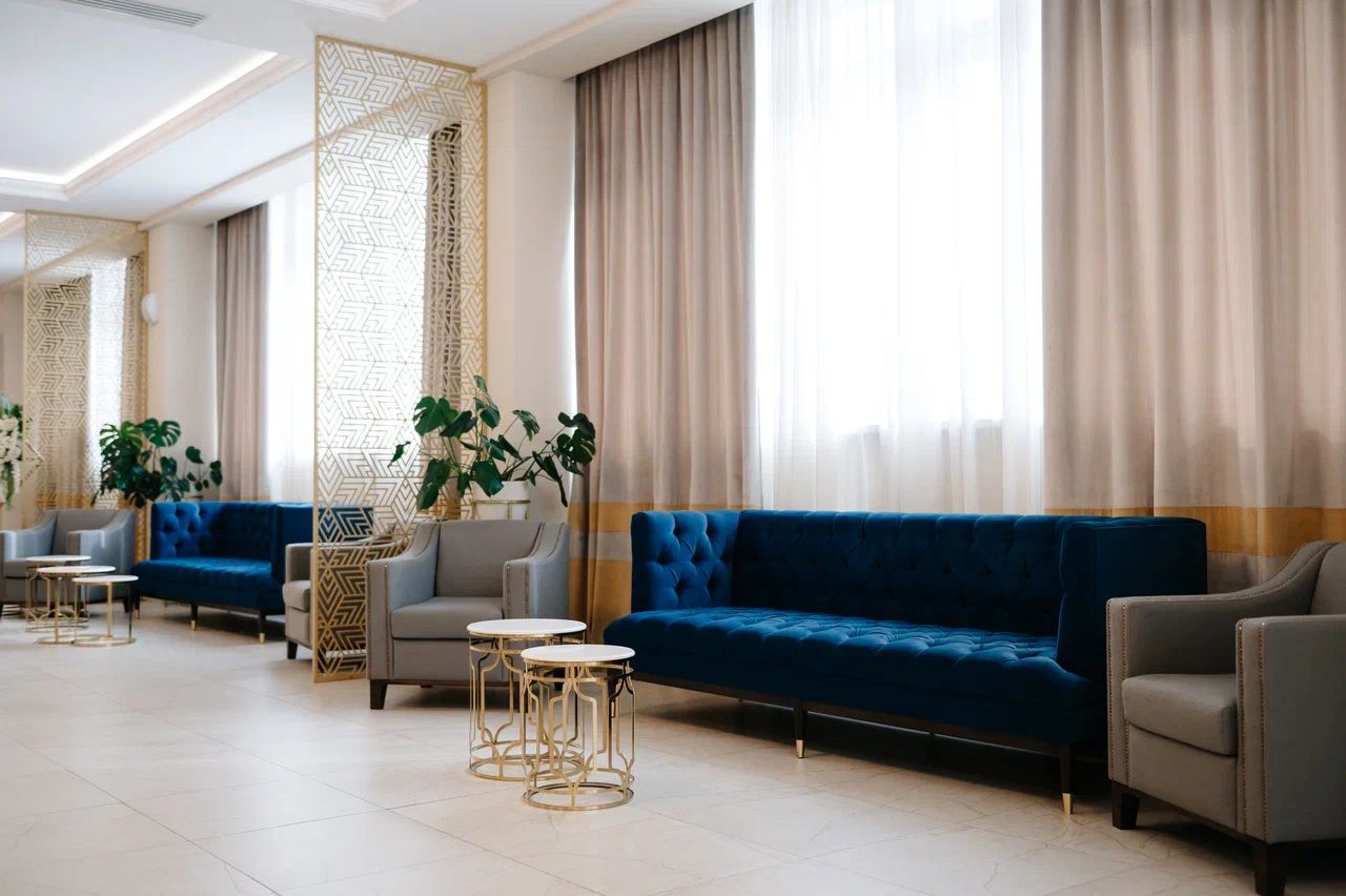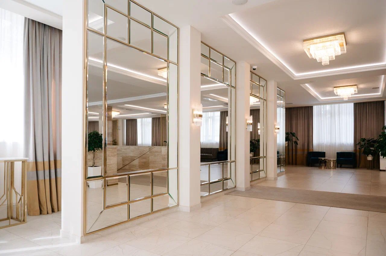 Малый зал Дворца бракосочетания №4 располагается на втором этаже торжественной зоны. В зале выполнена дизайнерская отделка в спокойных бежево-голубых тонах, стены украшают декоративные панели и современные полотна. Благоустроенная территория предлагает молодоженам несколько живописных локаций для фотосессий. Во внутреннем дворике установлен арт-объект в форме сердца, где можно сделать как парные, так и групповые снимки.