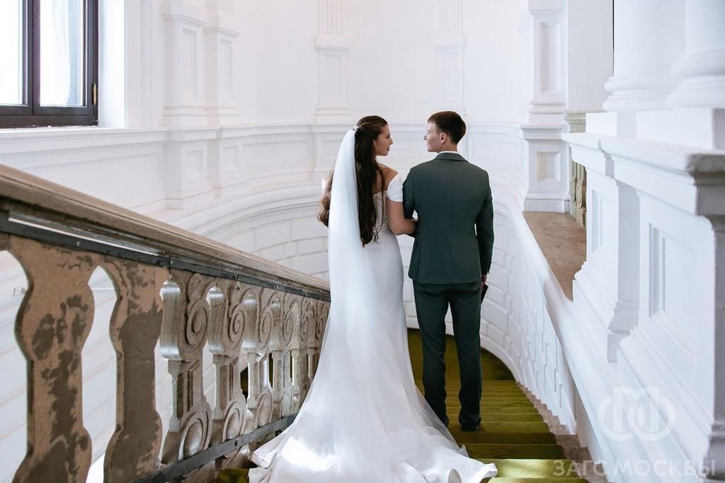 Торжественные церемонии проходят в просторном зале на втором этаже особняка. Интерьер выполнен в белых тонах с зеркалами в пол и декоративными величественными люстрами в классическом стиле. Парадная лестница, скульптуры в стиле классицизма, позолоченные люстры — все это создает атмосферу светских балов.